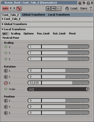 Así que deduje que debía ser cosa del objeto [/i](pues solo ocurre en este objeto y en el up-Vector de la pierna izquierda)[i]. Después cargué una escena antigua (en la que estaba bien, había animado el modelo, y eso no estaba así), cuando. Oh, sorpresa. ¿el gizmo también sale fuera de lugar? Esto me descarto bastantes posibilidades de que el problema estuviera en la escena. Debe ser cosa de algún parámetro del XSI pensé. Pero entonces. ¿porque solo afecta a ese objeto?