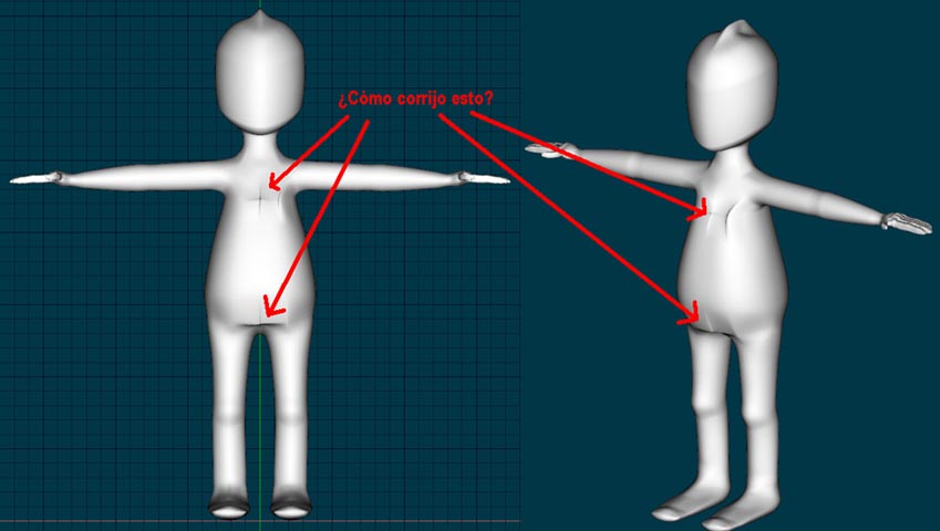 Hola, ya estoy aquí y vengo con problemas. He adquirido el am: quickstart de Anzovin para iniciarme de forma fácil, y ya he completado los videotutoriales de modelado básico y mapeado. Pero al crear este personaje para continuar con los tutoriales de rigging y animación, me pasa lo que veis en la imagen. Me he hartado de manipular los bias handles, de pasar de suavizado a esquina, de borrar y redibujar Splines en esas zonas. Una ayuda o ayudaza por favor.