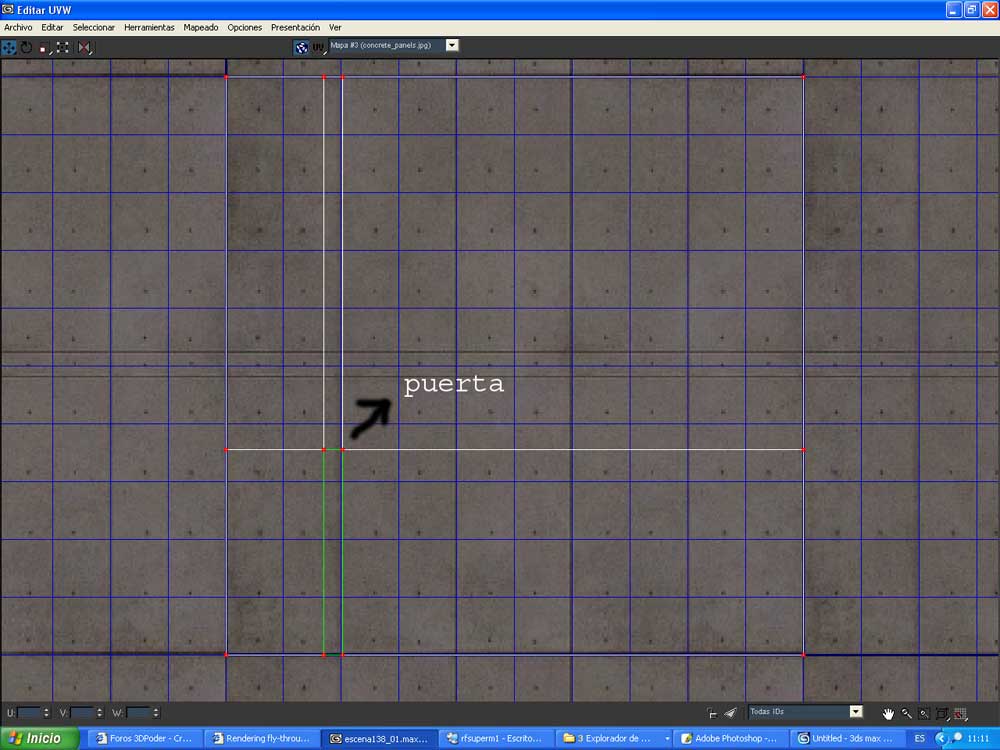 Saludos a todos. Llevo un tiempo intentando manejar el modificador desajustar UVW y tengo una duda que no he sabido resolver. Por ejemplo, cuando tengo una pared con el hueco de la puerta, le aplico el modificador desajustar UVWS y cuando me dispongo a editar esos UVWS, no me salen con las mismas proporciones que tienen en la escena. Como se ve en la imagen que publico, los UVWS no guardan una proporción real ya que la puerta y la pared son más anchas que lo que me marca el modificador. Esto me parece un porque a la hora de pintar una textura en Adobe Photoshop, tengo que hacerlo un poco a bolea. Seguro que hay alguna opción para mantener las proporciones, pero no la encuentro. Si podéis ayudarme, os lo agradecería. Saludos.