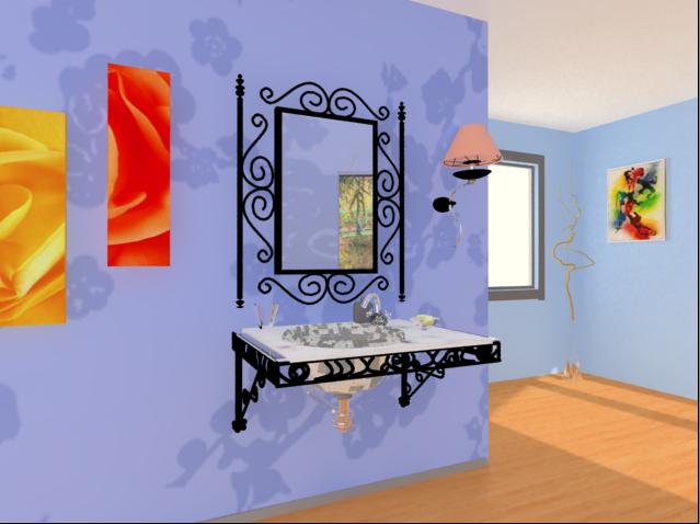 Vaya, a ver, lo de la forja tienes razón, pero es que, ni me di cuenta, bueno, el material del lavavo, ahora puedes entender por que lloraba por el material que usó azrraell https://foro3d.com/attachment.php?attachmentid=15130 en el suyo, bueno, y lo de agata Ruíz de la Prada, por que ¿no? Total, sabía que no estaba bien hecho el trabajo y me propuse ponerle cosas cantosas, ah, le puse un color azulado y luego un Diffuse con esas flores, y voil, a, le quité un poco de intensidad al Diffuse y se queda así. Saludos.