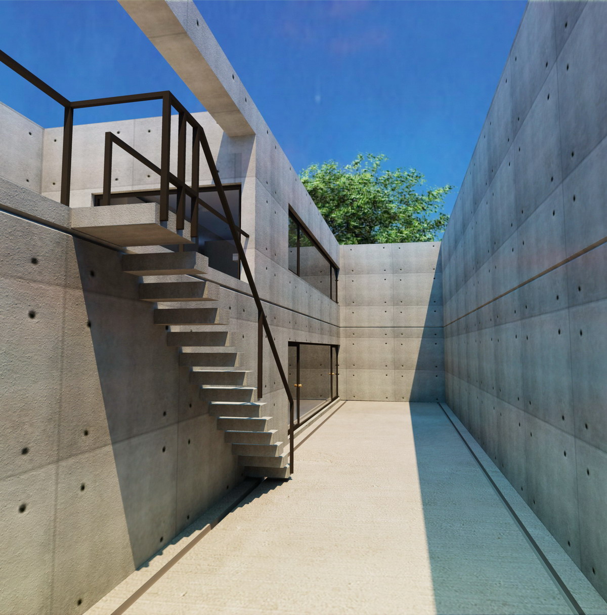 La sombra, azul es realmente rara, muy rara. Lo otro que me llama la atención es la baranda de la escala, como que no tiene material, solo es un negro, lo demás bien.