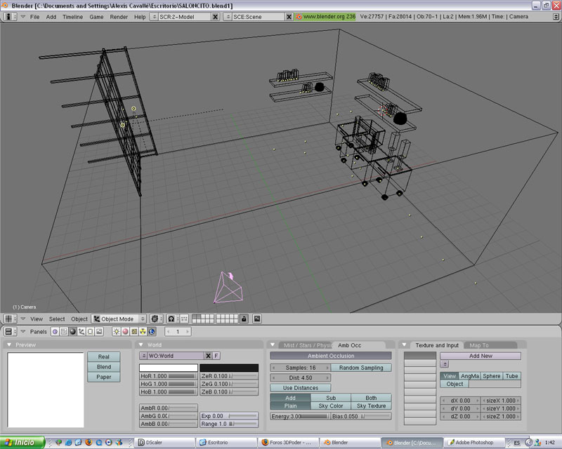 Bueno un poco de explicación, esta con Blender, con el motor interno, las texturas tampoco me he matado buscando, por eso un poco chapu, y creo que poco más que destacar. Saludos a todos.