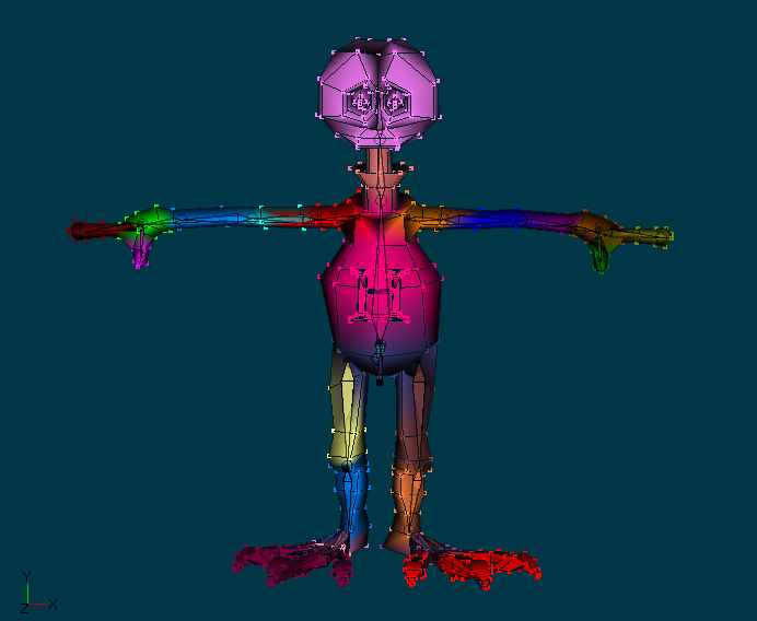 Has optimizado muy bien la malla de tu personaje, solo haría falta los mínimos loops para que las articulaciones puedan funcionar debidamente si se preparan para ser animadas.