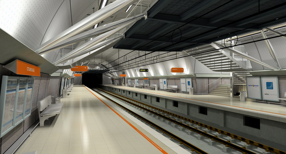 Sobre la mezzanina, yo no la diseño, así que, las formas me vienen dadas y no puedo cambiarlas, lo de si cuelgan o se apoyan, es para diferenciarlas de la línea 1 y 2 de metro Bilbao que si que cuelga, n, y el materia lde las vigas inferiores y de la chapa de abajo en la realidad no son nada reflectantes ya que son acero inox refractarioñ, por si hay un incendio.