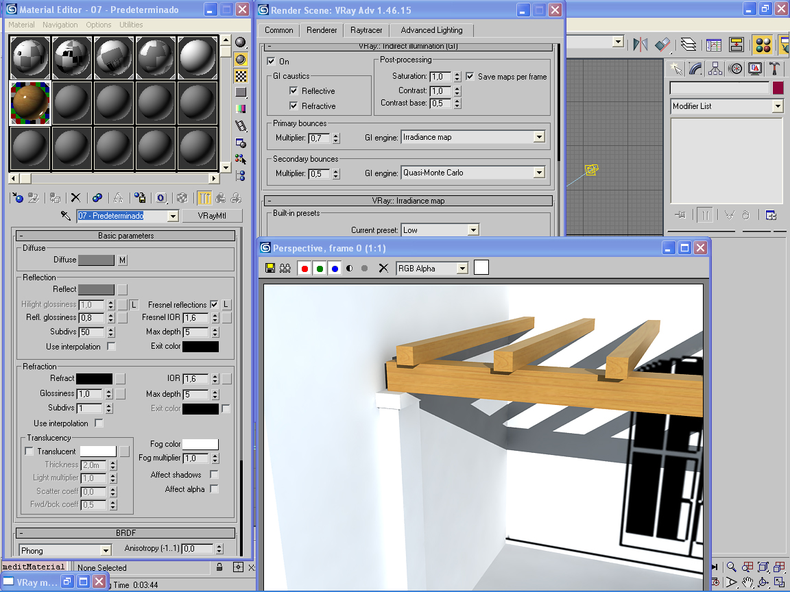 Recuerda que la madera tiene algo de Bump también, lo cual te ayuda a difuminar el brillo sin necesidad de tanto Glossy bajo.