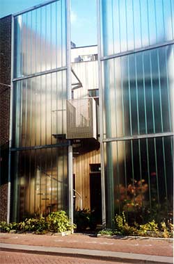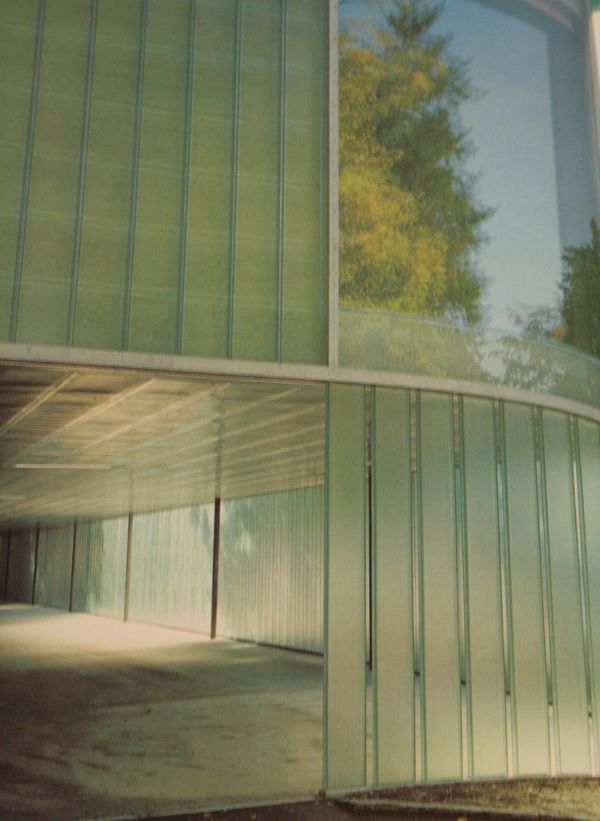 Aquí pongo otros ejemplos de lo que quiero lograr. Veis como el vidrio es opaco y tan solo tamiza la luz? Veis que aun así refleja en el entorno? Tan solo se ven las sombras que la estructura arroja al vidrio, ya que esta pegada a él.