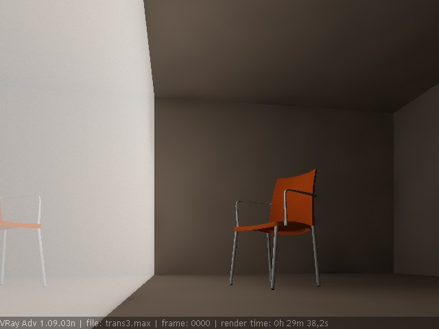En el render que estoy tirando ya consigo que refleje, pero queda un poco raro. Además, la reflexión, así como la refracción también influyen en la cantidad de luz que atraviesa el material, yo sinceramente creo que el truco está en esos dichosos parámetros. Pero como no los entiendo, pues ando a ciegas, y claro así no hay manera.