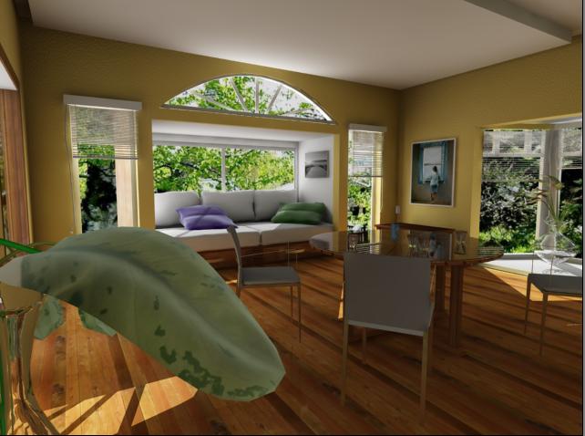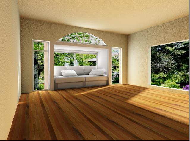 Deberías de poner atención en la madera del piso pues, se ve cómo se repite la textura, con un poco de paciencia podrías retocar la textura en Adobe Photoshop para después aplicarla o bien, recortar el área de la textura directo en el 3d (si mal no recuerdo usas el max) para evitar que se vea la parte oscura de la madera.