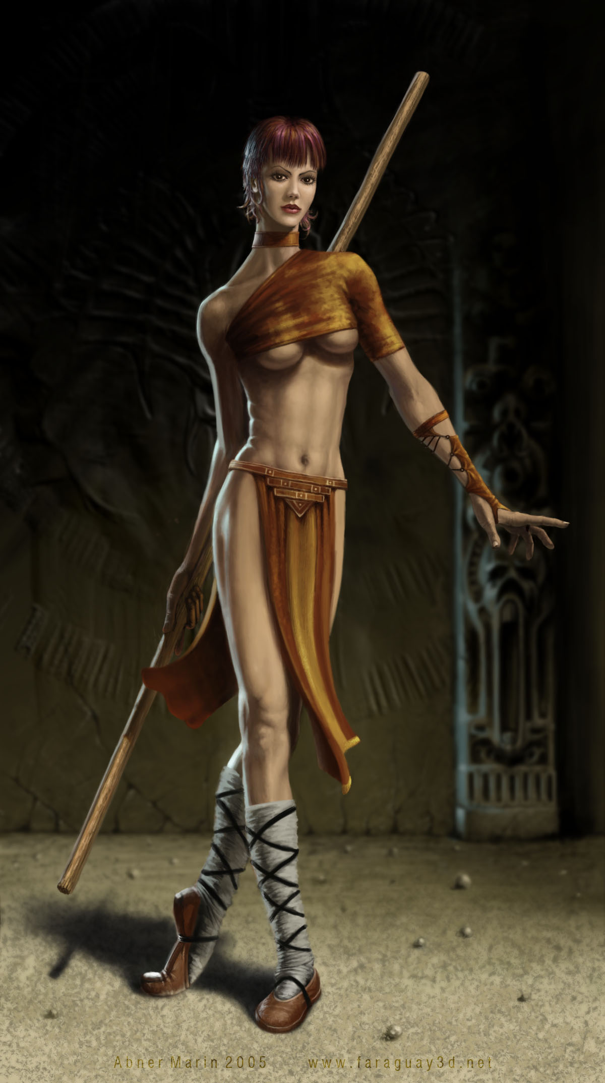 Estupendo trabajo, únicamente un par de detalles si me permites, la cabeza está en proporción al cuerpo y los abdominales son de hombre, de hecho, es bastante andrógina porque apenas tiene caderas.