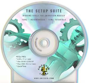 Anzovin acaba de sacar su suite de configuración de personajes: the setup suite, un CD donde han juntado the setup machine 2 (plugin para rigging de personajes), weight mover (plugin para pesado de personajes) y el contenido del CD a:m animating with tsm2 donde su creador, Raf Anzovin, explica como animar con personajes riggeados con the setup machine 2.