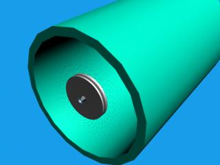 No logro hacer que la superficie interior del caño vaya cambiando de color a medida que pase el dispositivo, esta tendría que cambiar de color a través de los segmentos del caño, lo intente con un material mezcla y también con un degradado, pero no se bien cómo hacer la transición en el lugar correcto y que está acompañe al dispositivo de pintura.