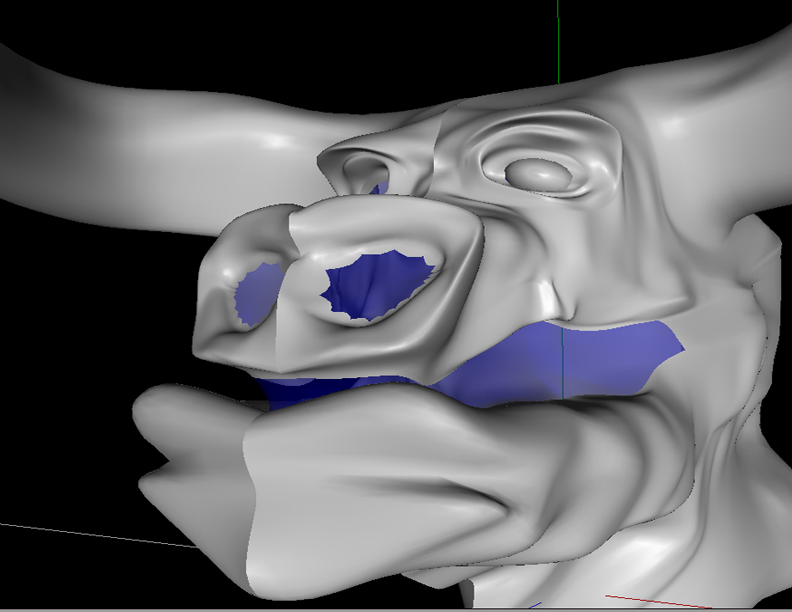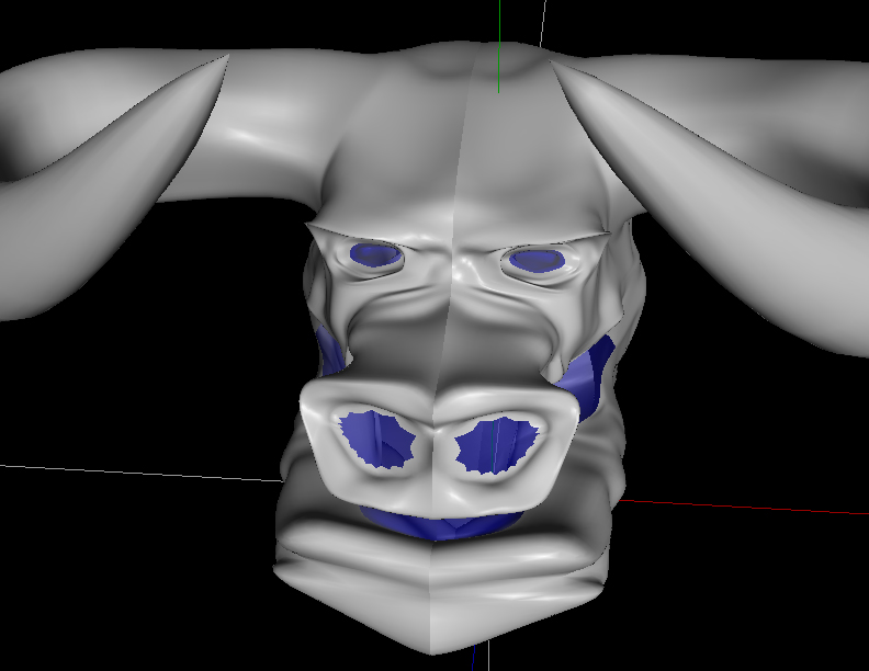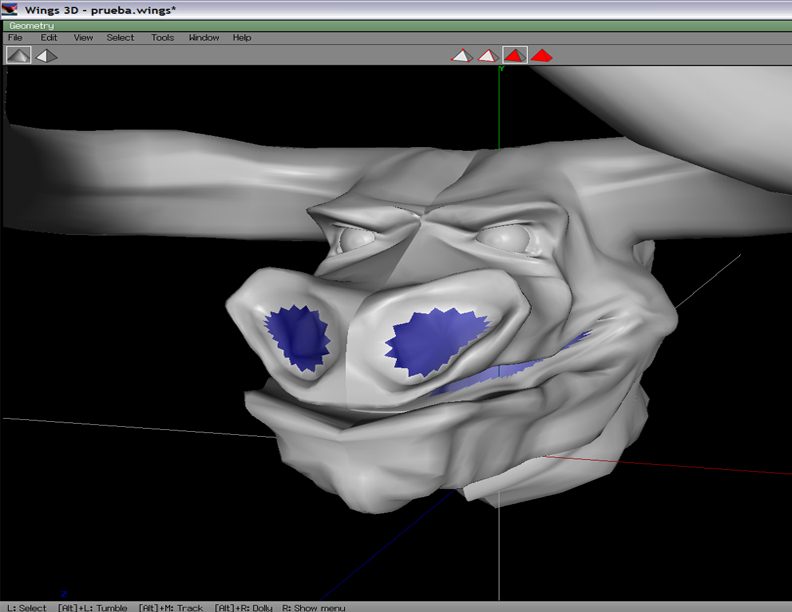 Ten cuidado también en no dejar bordes muy afilados, tanto en la parte de las cejas como en la nariz, sus bordes terminan muy afilados, dando sensación de pliege extraño, y en la parte de la barbilla hay unas deformaciones en la malla que queda raro, parecen como picos que le salen de la piel, intenta subizar eso, si es que lo tiene, y si no pues quítalo directamente, queda uy raro. Un saludo.