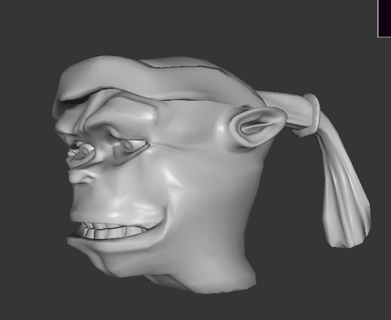 Bueno así creo que es lo quieres ver. Aquí se puede ver los arreglos que estaba haciendo en la malla por eso de las deformaciones en la nariz y en la quijada, pero voy que en eso estoy.