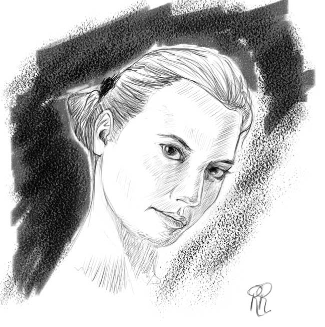 Si Ballo es Scarlett, tienes buen ojo o conoces muy bien la boca tan especial de Scarlett (que, por cierto, para mí es su signo de identidad físico más característico). Es cierto que en la fotografía que utilicé Scarlett no se parece nada a si misma, y entre eso y que alguna cosa se me habrá escapado, aun así algo del parecido se ha pegado en el dibujo por lo visto.