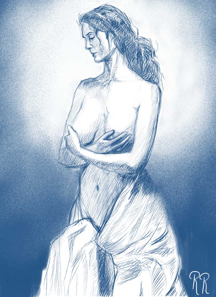 Vaya tío, muy bonito el boceto, me gusta mucho, ¿tiene los dedos entrelazados? Creo que te has pasado de largo con uno de ellos, pero ya te digo, muy bonito dibujo. Un saludo.