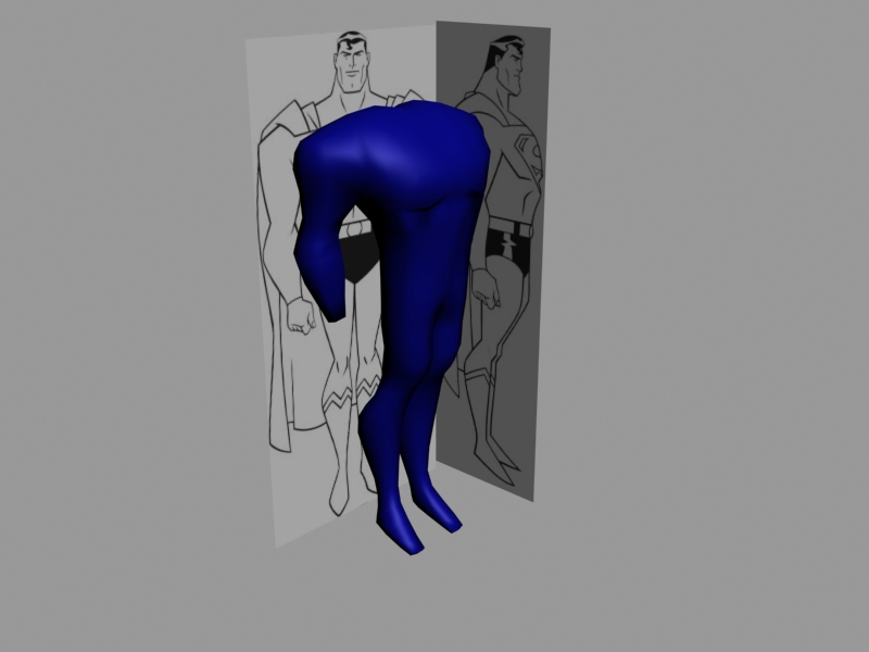 A mi de momento me va gustando cómo va quedando el cuerpo, pero aún no lo daría por terminado, en primer lugar veo la cintura demasiado ancha en comparación con el dibujo, yo se la haría más estrecha, se te olvido ponerle unas rodillas y creo que la curvatura que le has puesto a las piernas queda rara, como si estuviesen rotas, se ve que en el dibujo están así, pero creo que deberías crear esa curvatura desde más arriba, no justo cuando empiezan las rodillas, también lo que te dice IkerClon, la topología de la malla, no creo que te facilite mucho su movimiento, mírate las zonas de pliege e intenta meterle más segmentos, por ejemplo, en las muñecas, tobillos, codos, rodillas, hombros, en a cintura yo intentaría no cortar algunos segmentos donde los cortas, les dejaría que disen la vuelta entera al cuerpo. Un saludo.