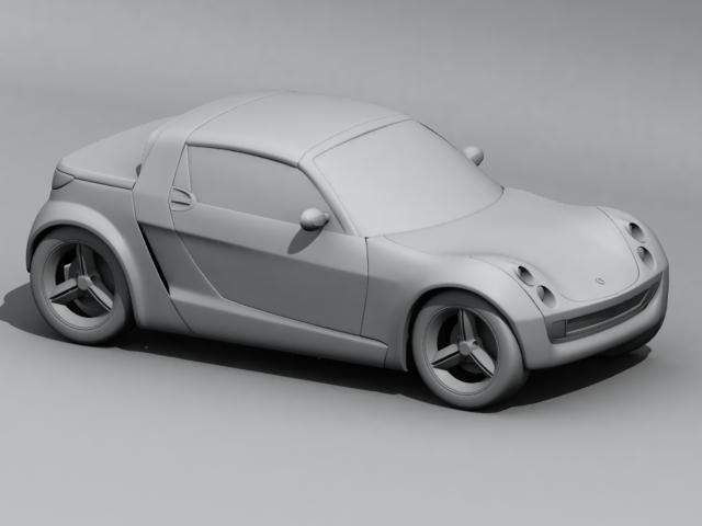 A las buenas. Os pongo unas imágenes de otro coche que estoy haciendo, un smart roadster (un coche que me resulta bastante curioso). Todavía le quedan detalles por hacer (como las llantas de las ruedas, interiores y accesorios), pero mi objetivo es integrarlo en alguna escena real, a ver qué tal queda. Saludos.