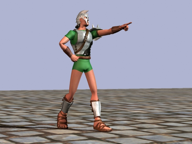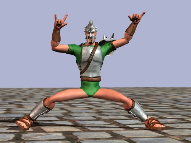 Buenas. Estuve haciendo un gladiador realista hace unas semanas, pero me costaba mucho trabajo hacer que deforme bien. Así que ahora lo he hecho tipo ton. Al menos ahora lo puedo animar con facilidad. Os dejo 2 poses.