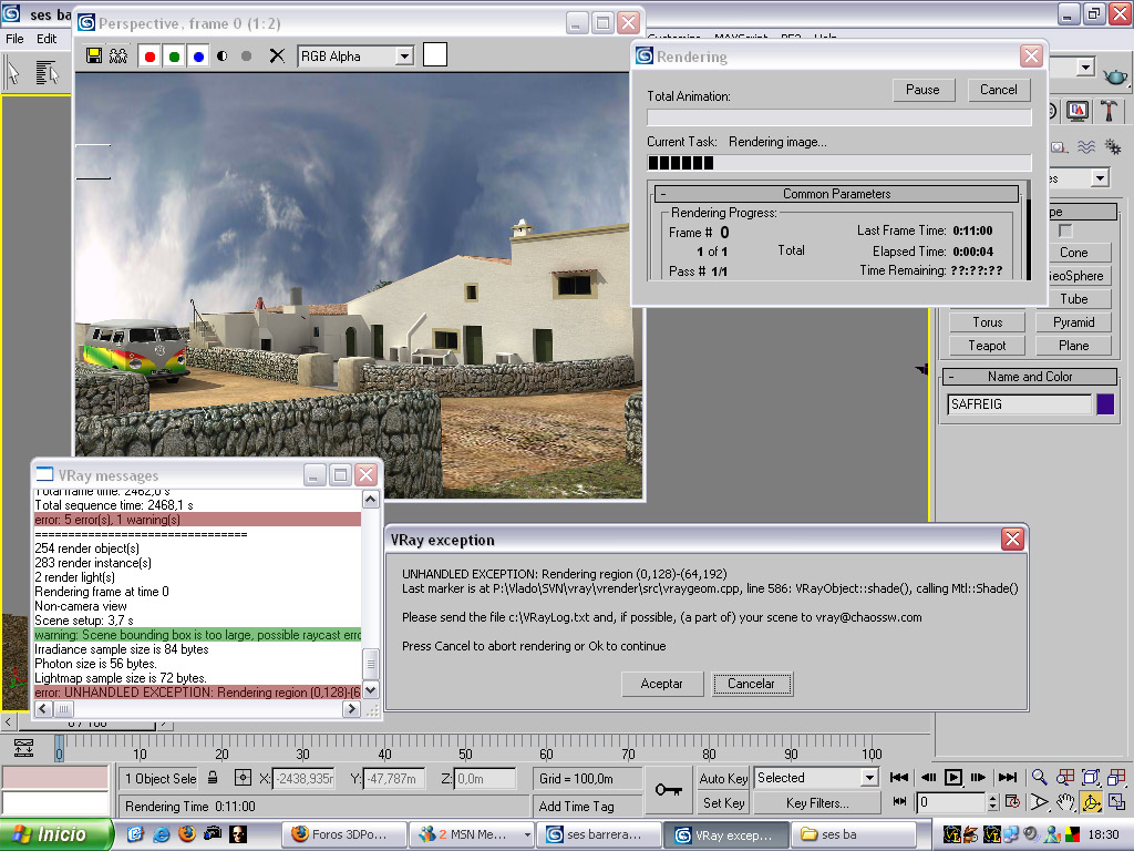 Hola a todos. Esto es lo último que he hecho con max 7 y Vray, la casa se dice así está situada en Menorca y se contruyo aproximadamente (por que con certeza no se sabe) hace unos 250 años.
