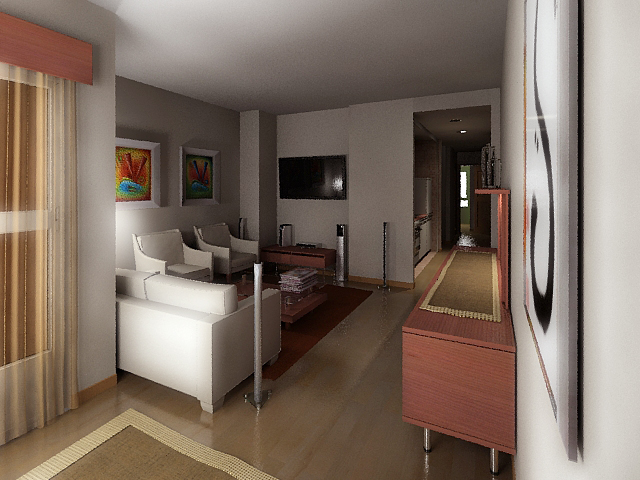 Bueno aquí les dejo un avance de un interior con Vray. El pisin en cuestión se lo va acomprar un colega, y le quiere dar unas vueltas a la decoración, así que, voy a provechar las vacaciones para trastear un poco más con el Vray, sobre todo los elementos que a mí personalmente más me cuestan, la puñeteras telas. ¿a ver qué sale?