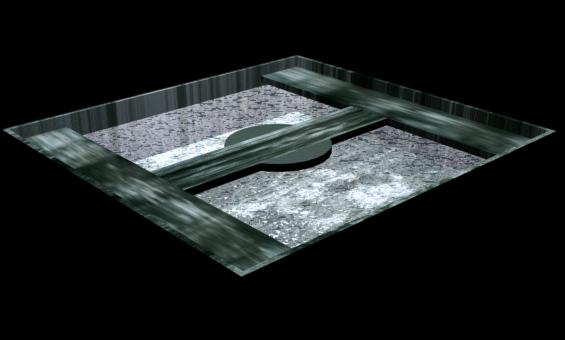 Perdonen por la oscuridad de la imagen, fue hecho con prisas, pero se aprecia lo que decía. El material no es el que iría, la parte supieror, seria toda transparente, mientras que la caja externa de la piscina seria de otro material. Pero la cagué al attachar la parte superior con la caja, ahora intento hacerla bien desde el principio.