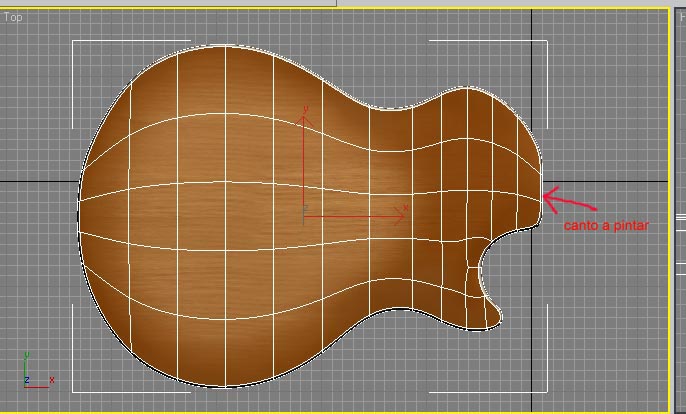 Pues necesito pintar de otro color el canto de mi guitarra, pero al momento de exportar el mapa Unwrapeado a Adobe Photoshop, me aparece el dibujo de la guitarra muy faceteada y me cuesta guiarme para el posterior pintado del canto, el cual debe ser muy fino y siguiendo la supuesta curvatura de la guitarra.