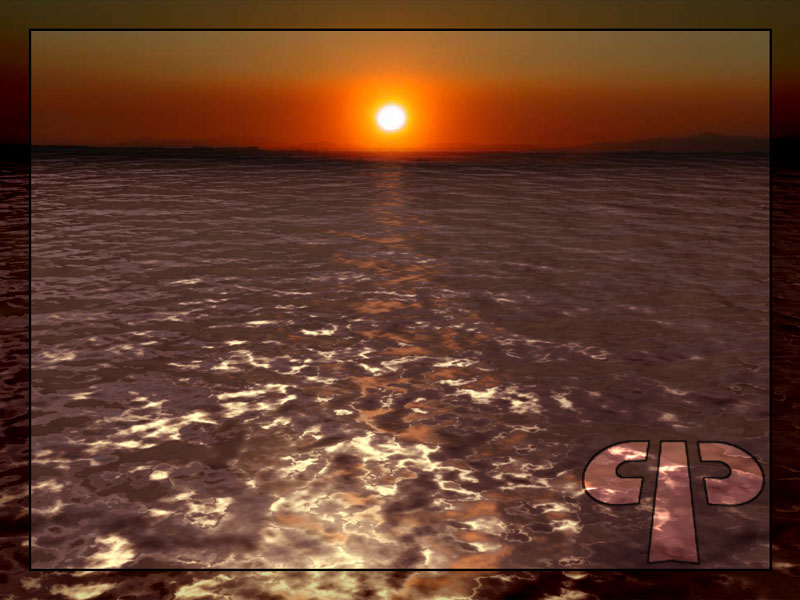 El agua está bastante bien, aunque el reflejo debería ser más intenso en la lejanía. El sol también podría difuminarse un poco más, te enlazo a una imagen de referencia. Saludos.