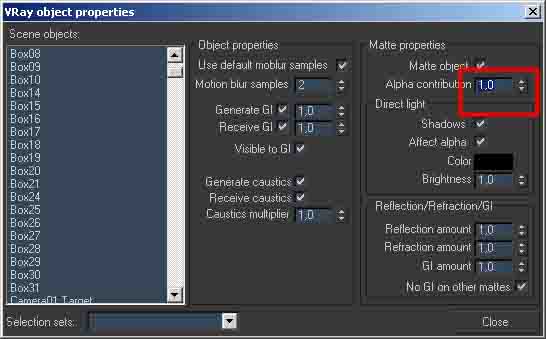 Material matte-shadows en Vray problema?
