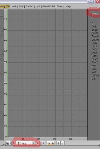 Selecciona la luz, y elige Lamp en el ipo curve editor. Lo he intentado yo también, de momento me funciona así. Selecciona energy de la lista de la derecha y pulsa r y elige still ya tienes una ipo curve.