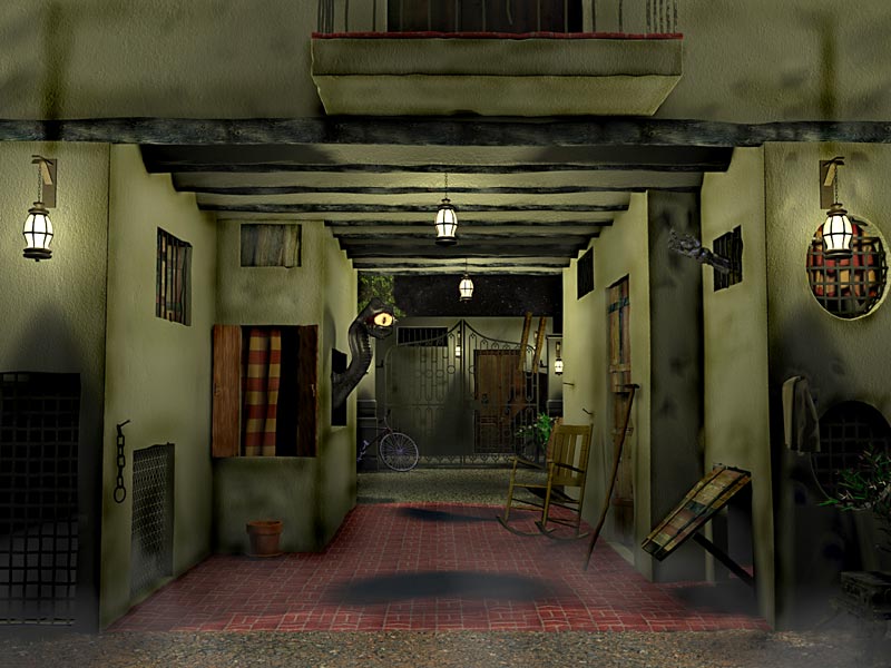 Las manchas de las paredes quizás sean demasiado irreales, algún desconchón o relieve de pintura sobre pintura podría ofrecer mayor realismo a la imagen. Saludos.