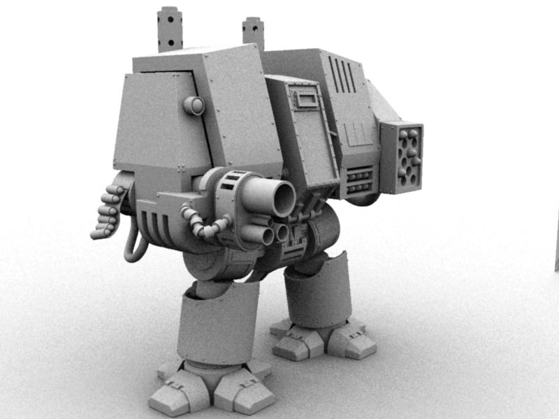 Ayer en un mensaje se comentó algo sobre los dreadnoughts, y ya que de momento tengo tiempo libre me he puesto a modelar a ver qué sale. La primera imagen es lo que llevo de modelado (de momento no estoy abundando en detalles) y la otra imagen es la que estoy tomando como referencia. Espero que me machaquéis ya que este es el primer modelado que hago de un robot (de algo mecánico). También me ayudaría bastante si alguien conoce dicha miniatura para aconsejarme y corregirme, aunque no estoy siguiendo el modelo tal cual. Un saludo.