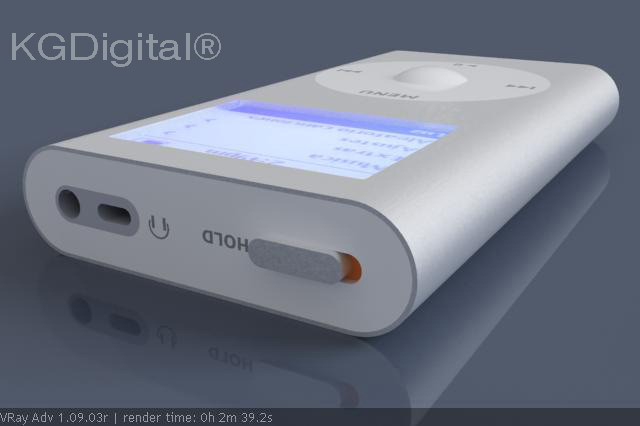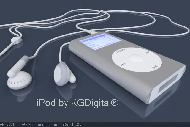 Si tienes razón, en la primera fotografía salió así porque se me olvidó quitar un Bump map que había puesto como prueba, de resto salen así puesto que el mini IPod que tengo tiene la carcaza metálica y no plástica, creo que es de aluminio cepillado, pero no rayado, como aluminio con pintura escarchada o una cosa así.