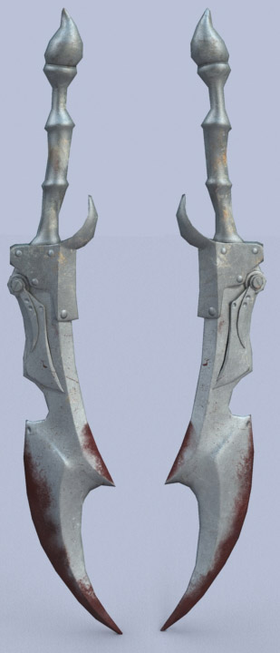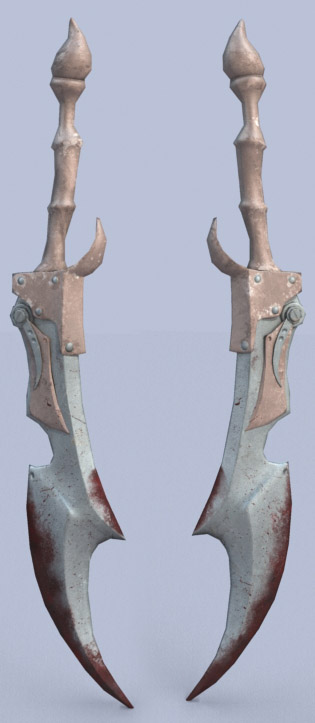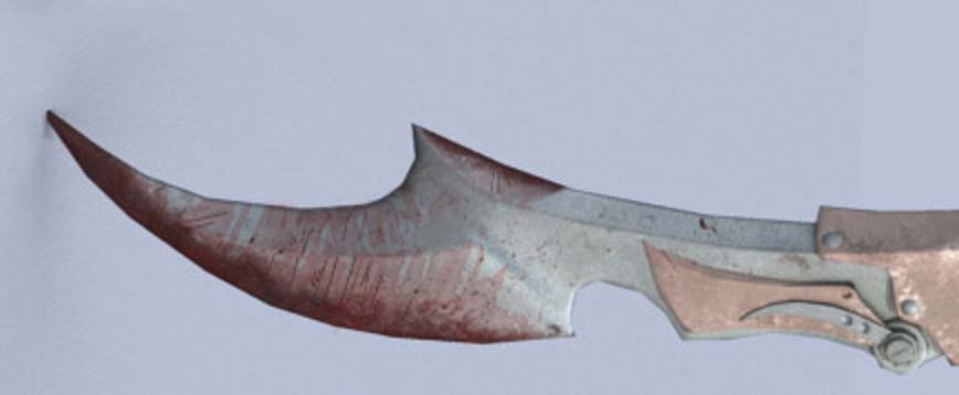 Imagínate que dejas caer un poco de pintura roja en una mesa y, seguidamente, le pasas un trapo una sola vez. Lo que te queda es la mesa más o menos limpia, pero se nota toda la mancha de pintura extendida, como mal fregada. Así tendría que quedar la espada, si se ha usado recientemente.