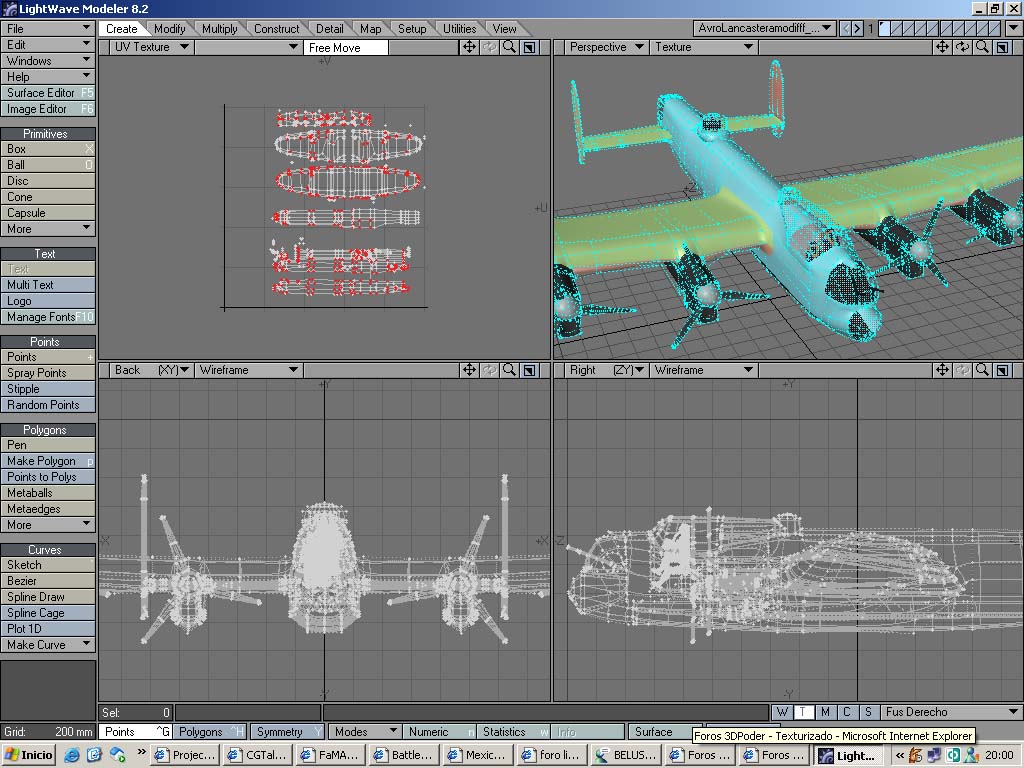 He modelado este lancaster de la segunda guerra mundial, pero tengo problemas con las texturas UV, dividí el modelo en varias partes como: alas superiores, inferiores, fuselaje (en 4 partes arriba, abajo y ambos lados). Pero al pryectar las texturas, las letras y todas las líneas rectas que proyecte quedan deformadas, la textura la realice UV planar, ¿cómo puedo hacer para que esto no suceda? Espero a ver sido claro. Un saludo desde Argentina.