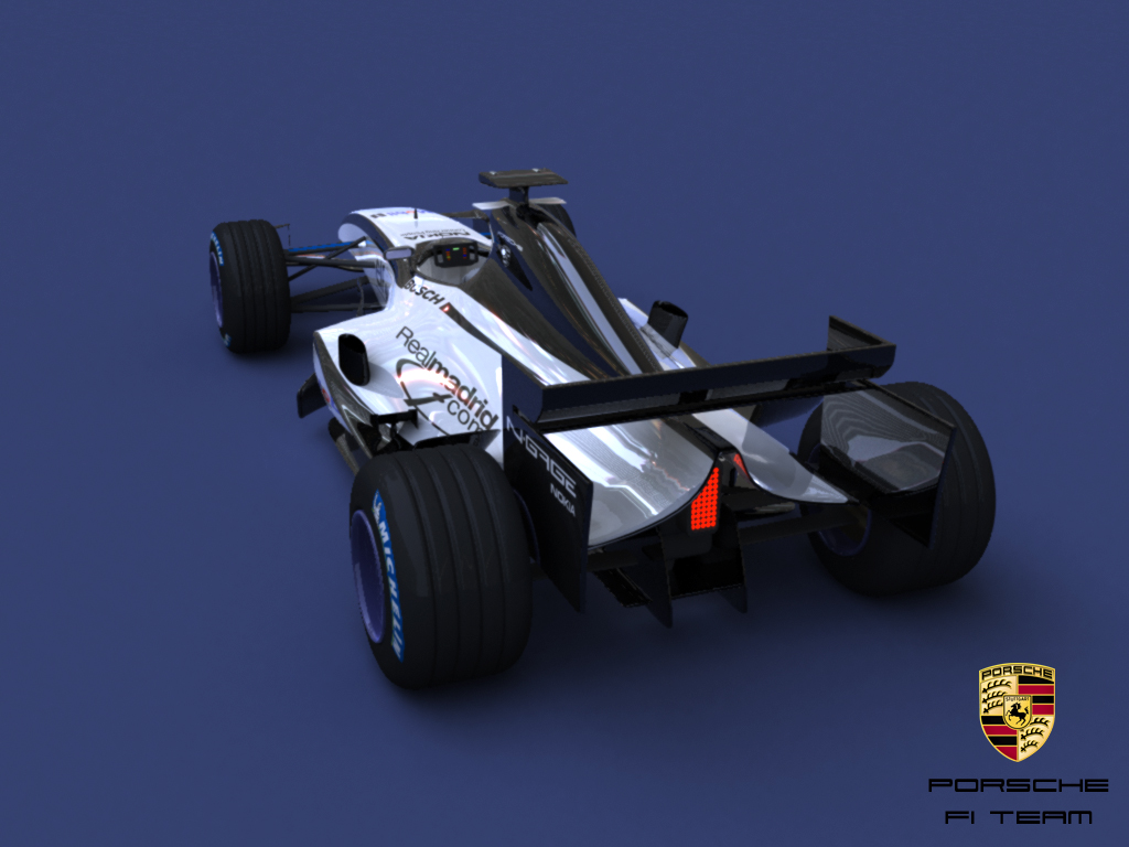 Hola gracias por vuestros comenarios, el coche no existe, es pura invención. Porsche no tiene ninguna escudería en f-1, pero lo he hecho así porque no quería reproducir ningún coche en concreto.