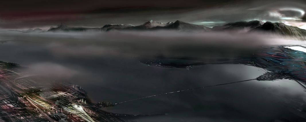 Hola xente. Aquí os dejo otra muestra de mi trabajo, en este caso una imagen de una ciudad en otro planeta, llamada lhelo. He decidido utilizar la perspectiva aérea, por encima de un primer nivel de nubes para mostrar una buena panorámica.