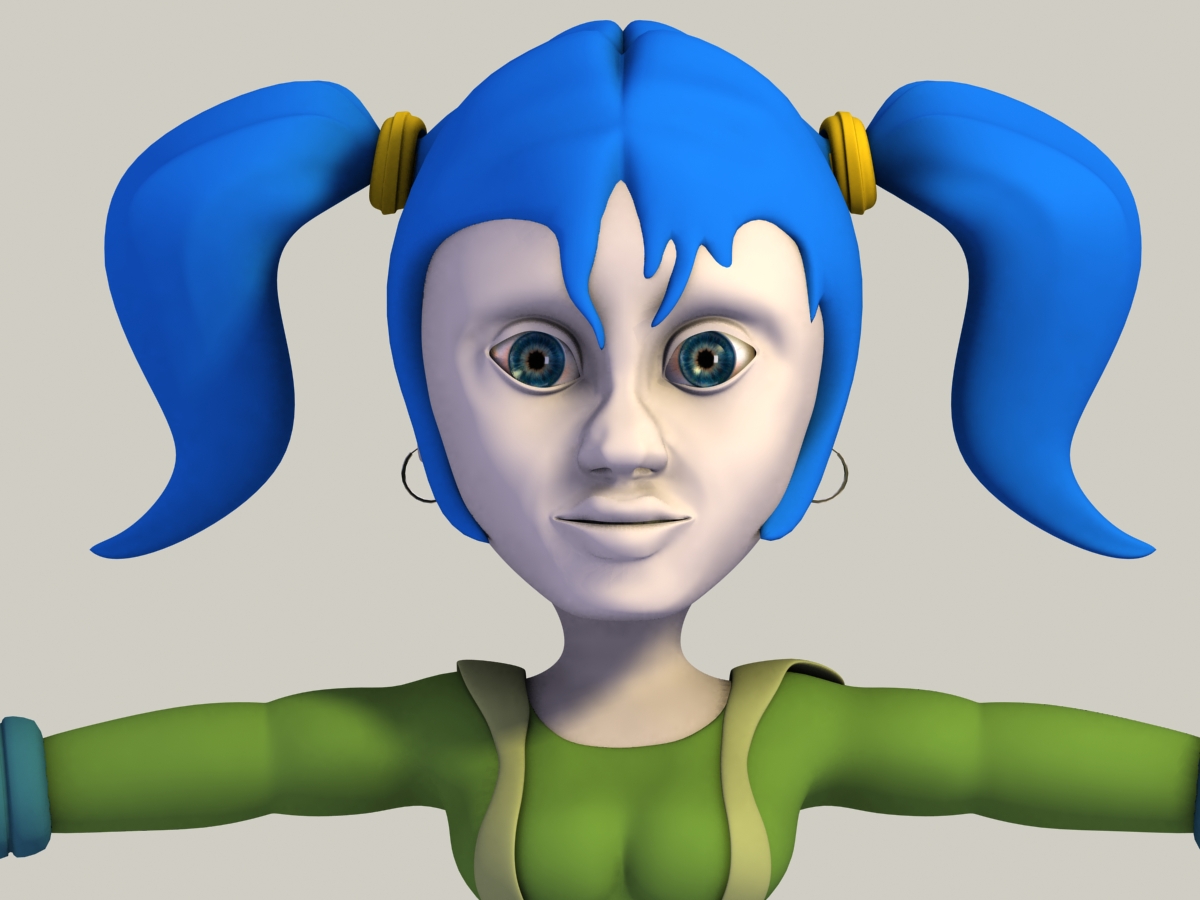 Si es fea sí, y los ojos rojos se los puse a posta, me encanta putear un poco a los bichos que hago (experimentos sobre todo, ya que entero este es el primero que hago) pero vamos, falta retocar un poco la cara, le falta la parte delantera del pelo, que no tiene esa cacho frente. Y algunos retoques, tomo nota de vuestras indicaciones. Gracias.