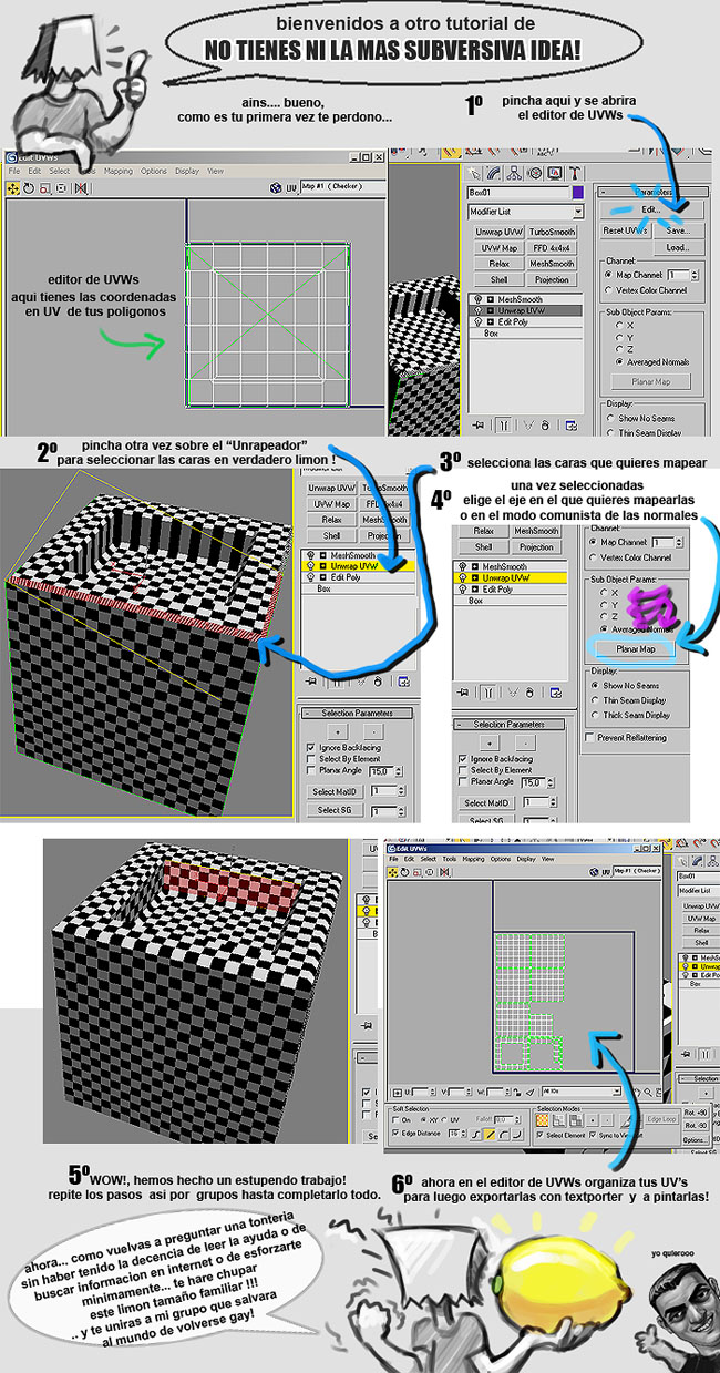 Si Ballo, una caja, no sé cómo mapear una caja, si tan sencillo es, ¿me podrías explicar cómo puñetas haces para que en las zonas de redondeo, como los rincones o las esquinas, no se me deforme ni se note las uniones del mapa?