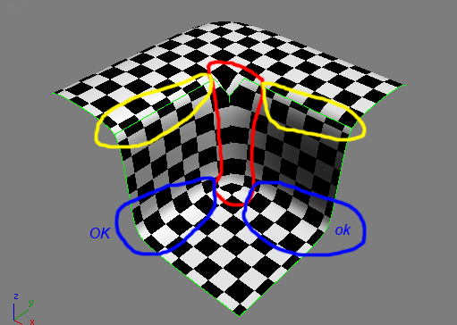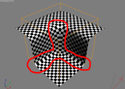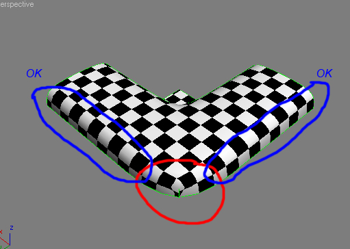 Tiene truco, mira el wireframe y verás el cambio que he hecho, aunque también había formas de que quedará bien de la otra forma, aunque habría que tomarse un arduo trabajo de mapeado, tomaría mucho tiempo.