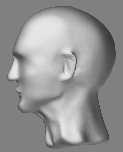 Les cuento que volví para atrás con el modelado, y le bajé la resolución a la malla, pero corrigiendo un poco la geometría de la cabeza. A ver qué les parece ahora.