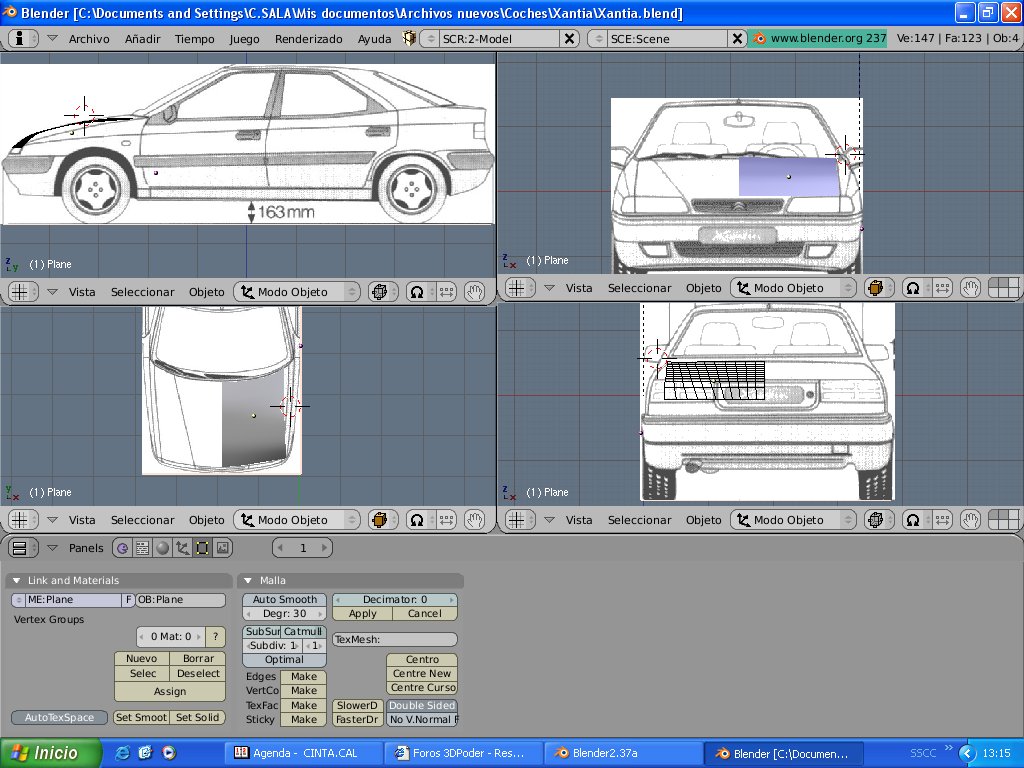 -La idea a es lo que vengo haciendo hasta ahora, pero cuando modelo una pieza de la carrocería basándome en una vista, no me coincide en la otra, (siempre jugando con los valores de background image).