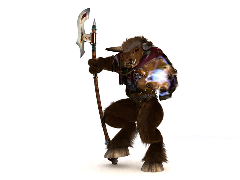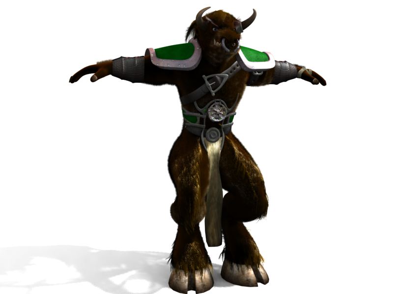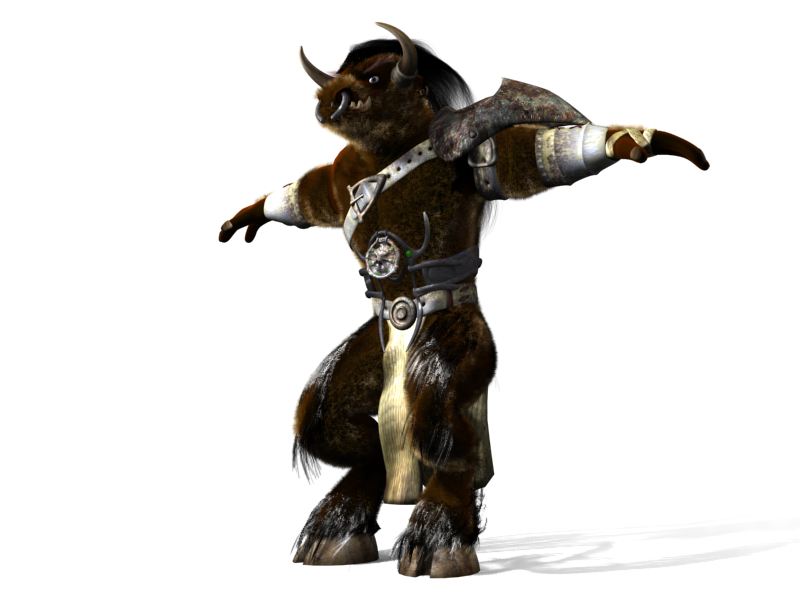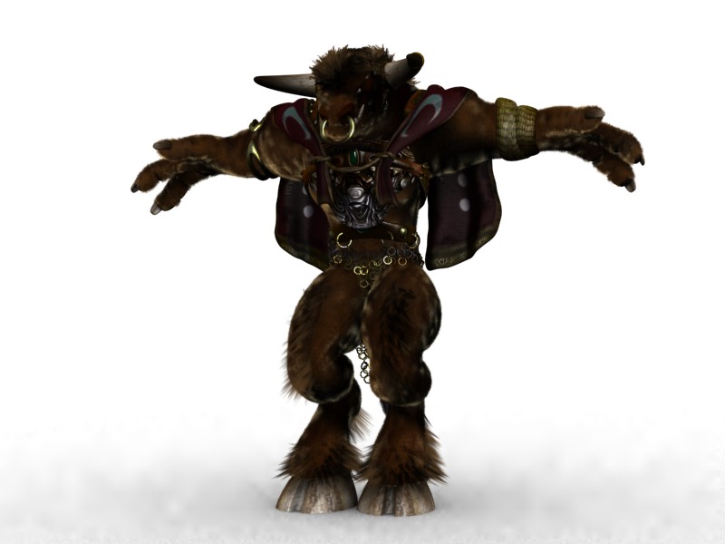Pues nada, que con esto de que me gusta un montón el world of Warcraft y tal pues me he liado a modelar un Tauren. El pelo esta algo raro, porque es la primera vez que uso Shag Hair y no lo controlo demasiado, y el equipo (brazaletes, cinturon.) esta provisional aún. Saludos 3dseros.