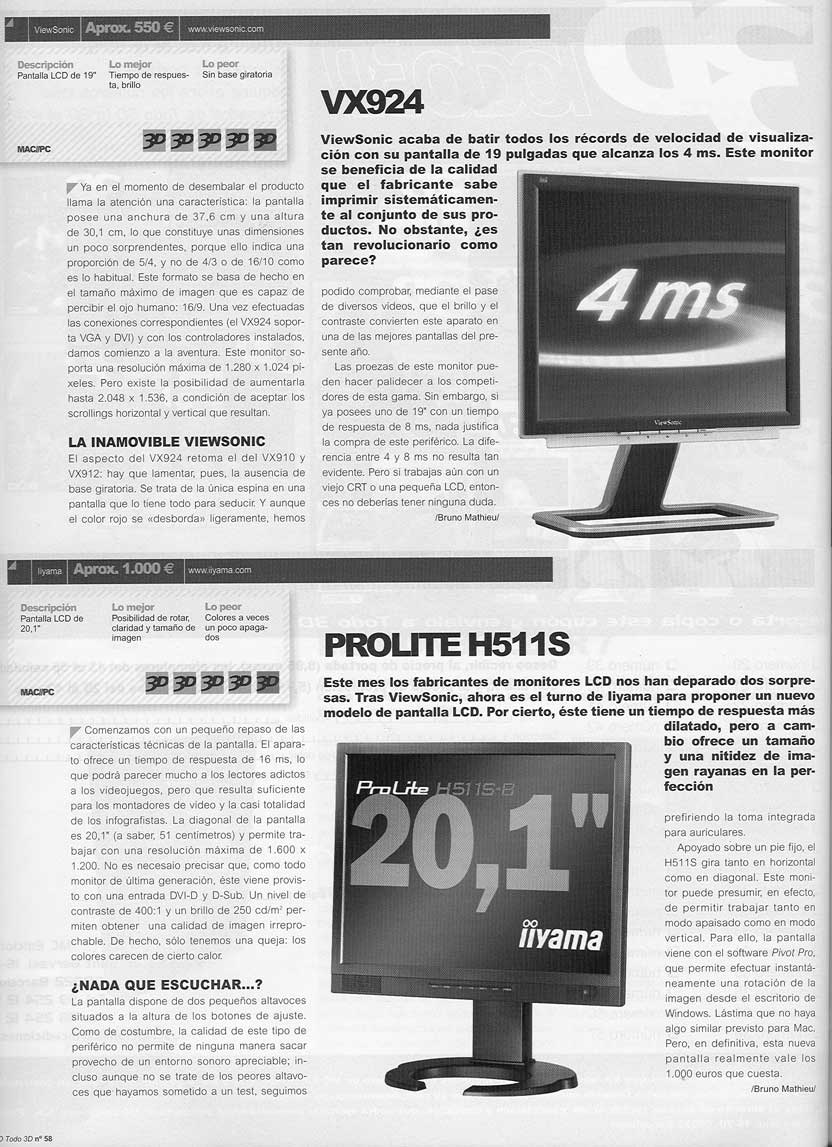 Hola a todos, quiero comprar un monitor de 19 pulg, y no sé si comprarlo CRT o TFT, yo lo uso para CAD y para 3d Studio e infografía en general, en una tienda me dijeron que en estos casos es mejor un CRT, pero yo quería saber que opinaban ustedes, desde ya muchas gracias por cualquier comentario.