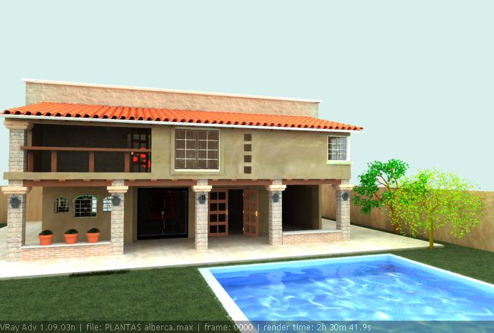 Hombre, no está mal, aunque hay algunas cosas. Se nota demasiado la repetición de ciertas texturas, como el suelo o la pared de límite, también te aconsejaría que los árboles tuvieran alcorque (un poco de tierra al lado del tronco, vamos.) y la barandilla debería tener más particines porque por ahí se te cae alguien, también veo extrañas las sombras por que la casa proyecta hacia la pantalla, pero el árbol proyecta al revés. Saludos.