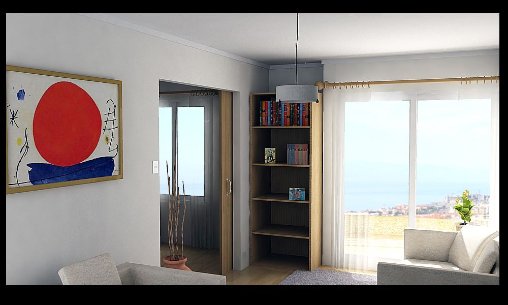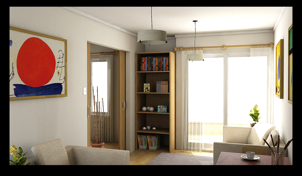 Buen trabajo Carlos, quizás y a modo de sugerencia subiría un poco el dark multiplier, encuentro un poco oscura la zona de la estantería en relación con la cantidad de luz que penetra desde el balcón. Y tal vez subiría el multiplicador de la Vray Light en la otra sala, si es que la has utilizado. Saludos.