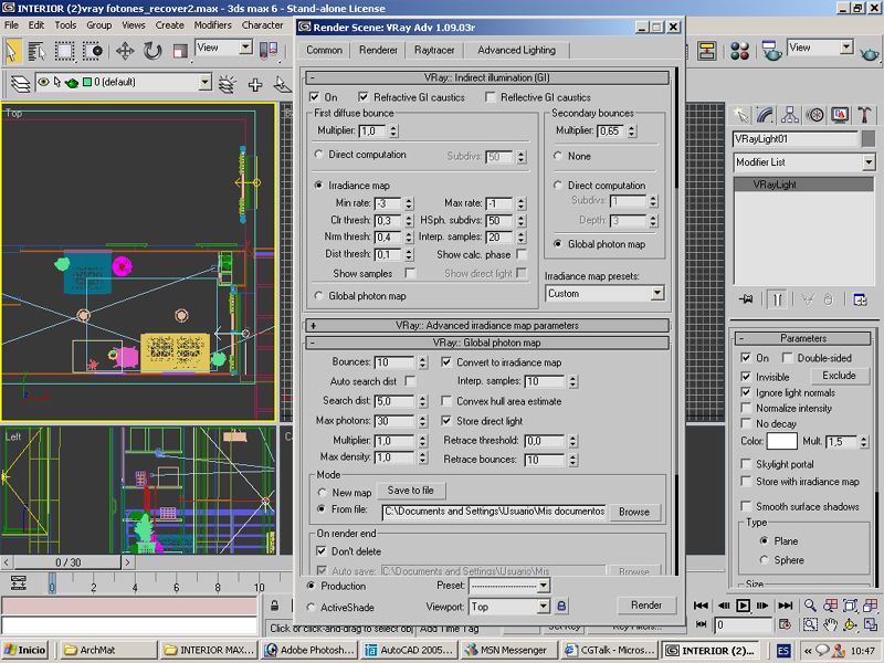Ahí van los parámetros tanto del irradiance como de los fotones, si me apuntáis algo sería genial pues del tema no se mucho, o sea tengo poca pratica.