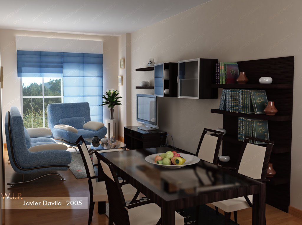 Primero agradecer a el señor slimo el excelente tutorial y explicación que realizó, y gracias por su generosidad. He realizado una escena interior de un salón para practicar un poco, este creo que va a ser la primera de un conjunto de renders de diferentes estancias de una vivienda.