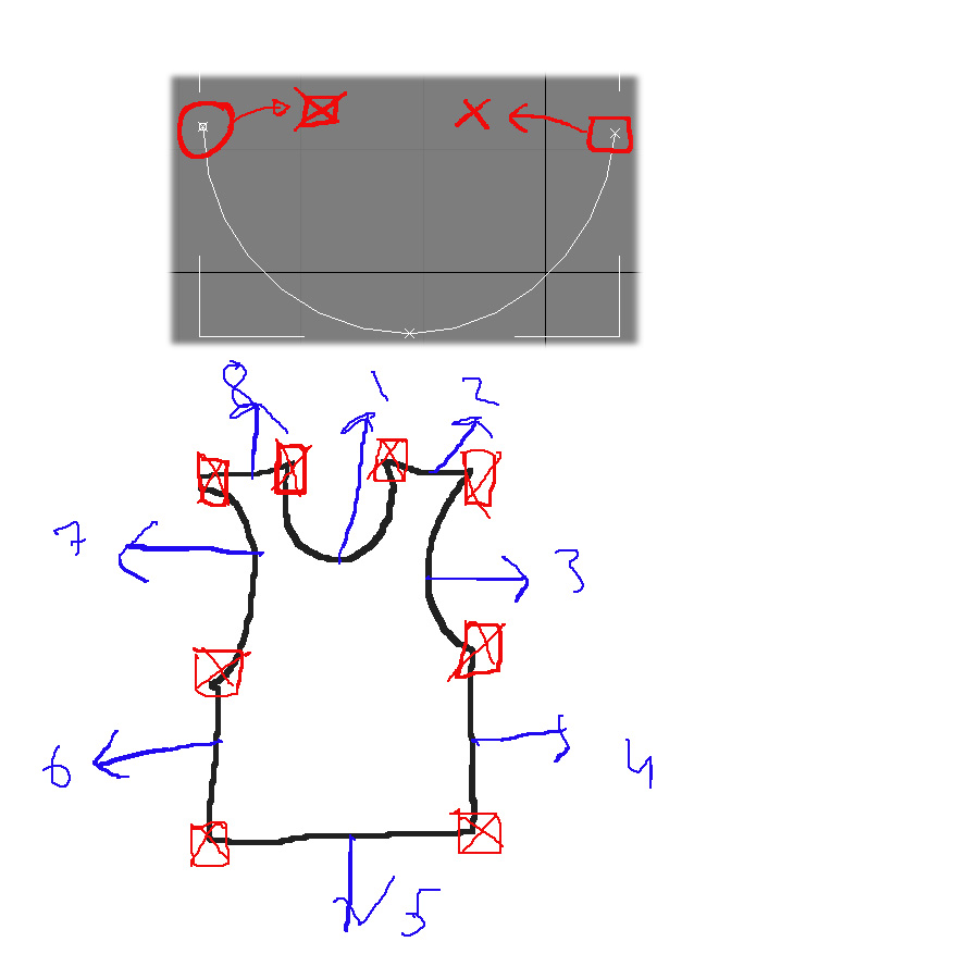 Veréis, para usar Cloth FX, he visto unos tutoriales donde se dibujan la ropa Splines. Y luego hacen todo el proceso. La cuestión es que, al dibujar las Splines, las hacen como os he marcado a mano en la imagen adjunta.