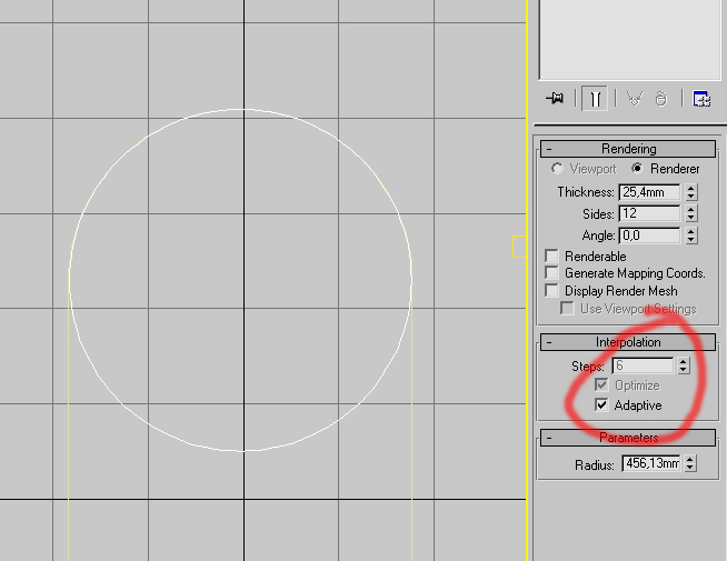 Como la Spline que vas a restar del muro después de extruírla tiene curvas, deja que el bueno de 3ds Max decida por ti la interpolación marcando adaptative.