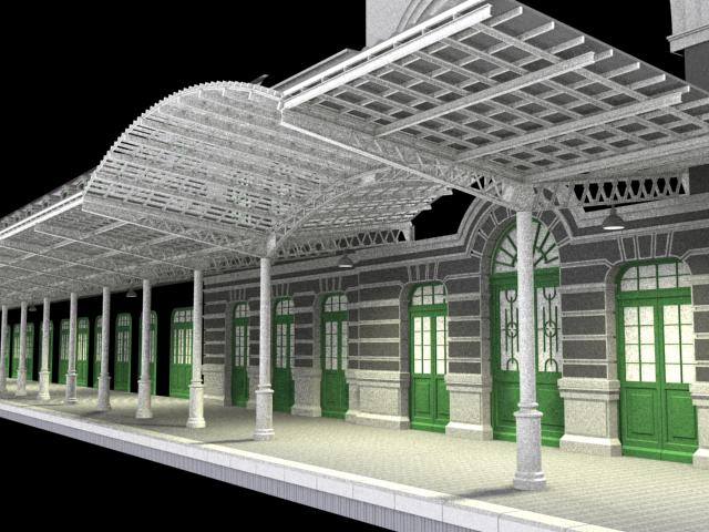 Por ahora los avances son pocos me he quedado atascado en la ornamenta no sé por dónde empezarla por lo del modelo real más que restaurarla van a destrozarla por eso me emprendi en este proyecto el crear un modelo 3d de toda la estación y alrededores en la fecha de su construcción.